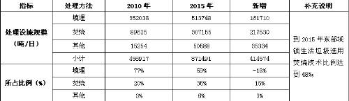 表1中国城市生活垃圾无害化处理“十二五”规划情况