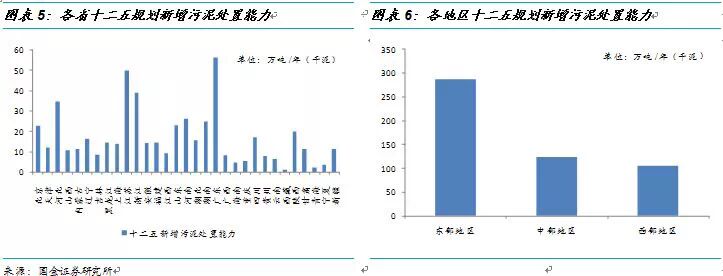 根据十二五规划,到 2015年,直辖市、省会城市和计划单列市的污泥无害化处理处置率达到80%,其他设市城市达到70%,县城及重点镇达到30%,新增污泥处理处置规模 518万吨/年(干泥),合算成 80%含水率污泥的量为 7.1 万吨/日,相关处理处置设施建设投资将达347亿元。