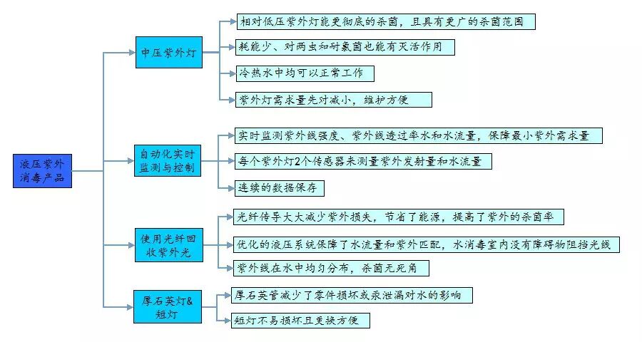 液压紫外消毒可处理不能加热的水(巴士消毒法需加热)。