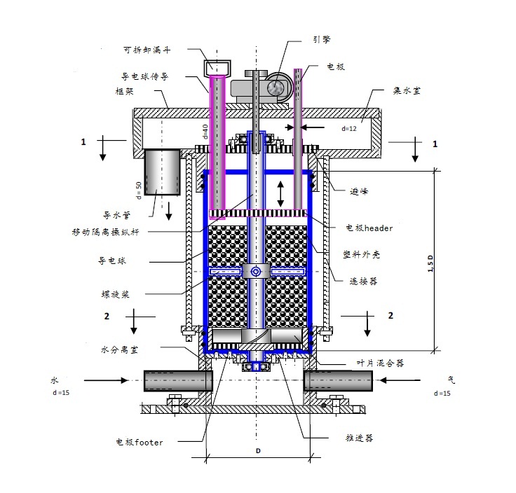 AquaSpark的设备克服了这些问题,通过气液压形以及电极之间的机械搅拌来控制导电球的运动和分散,导电球不会凝结,分散性好,污水在反应室停留时间也能得到保障,COD去除率大大提高。