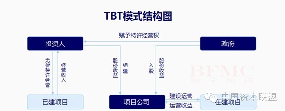 TBT融资模式中,ZF通过TOT一次性融得资金后,会在BOT项目中入股,甚至主导项目的实施。这样,其他投资人就不用担心财务上和ZF履行合同上的问题,而且有了ZF的强力参与,又有了资金的保证,就大大增加了项目实施的成功率。
