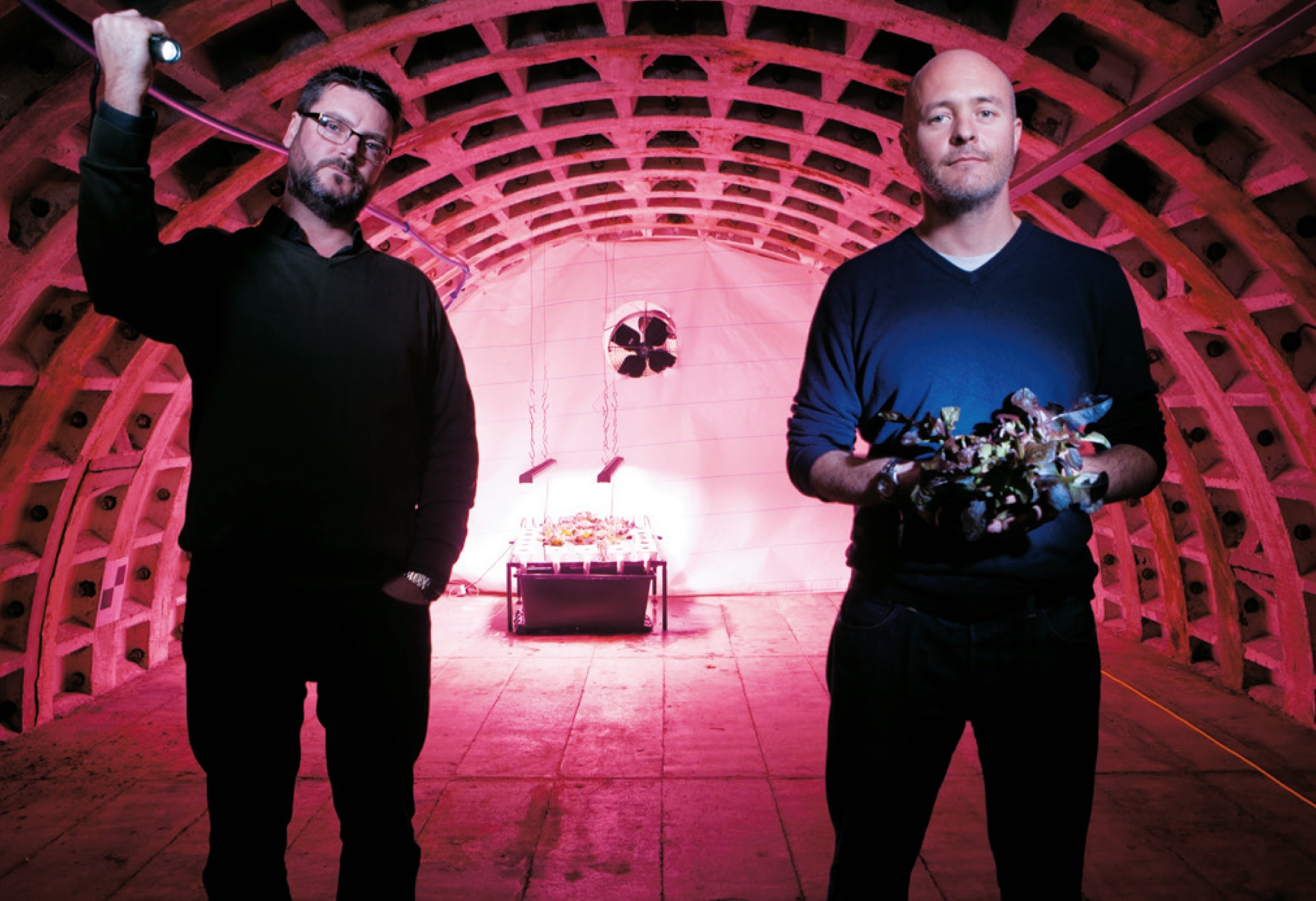 不过,在城市中养蜂还不算伦敦最酷的农业实验。理查德·巴拉德和斯蒂夫·德瑞恩在开发新想法时,挖掘到了意料之外的深度——他们获得了伦敦交通公司(Transpor t forLondon)的许可,将二战时期伦敦的防空洞转化成2.5英亩的独特地下农田。