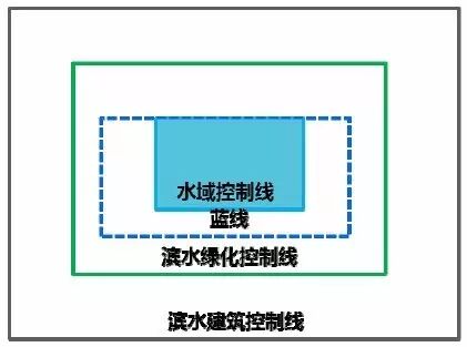 【条文说明】关于滨水绿化控制范围与城市蓝线范围的关系。城市蓝线包括水域控制线和陆域控制线;滨水绿化控制范围包括蓝线中的陆域控制范围以及根据城市功能需求布局的其他滨水绿化用地范围。