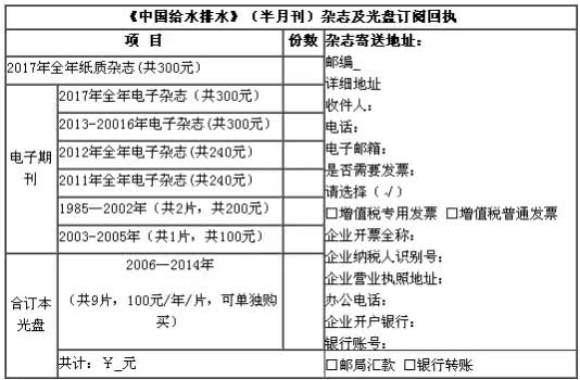 本回执填好后,可传真至编辑部或email发送至cnwater@vip.163.com