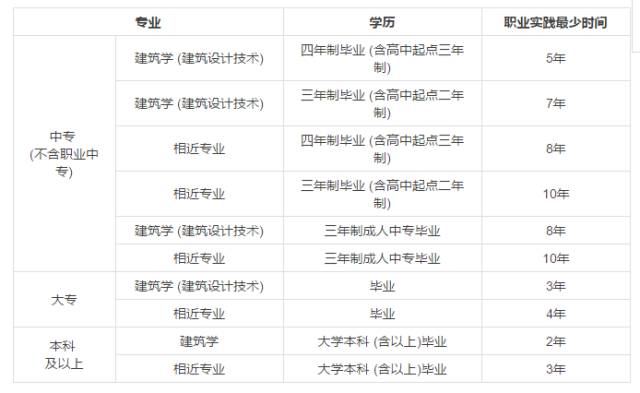 报名条件中有关学历的要求是指国家教育部承认的正规学历,有关工作年限的要求是指报名人员取得学历前后从事本专业工作的时间的总和,其截止日期为考试报名年度当年年底。