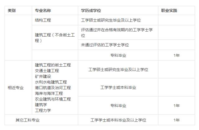 3、取得其他专业大学本科及以上学历或学位,累计从事岩土工程专业设计工作满1年。