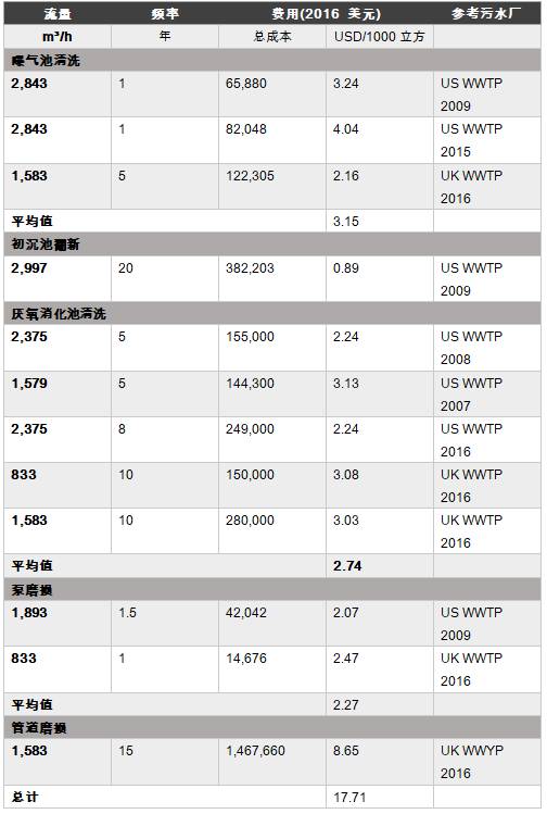研究团队直接从美国和英国水务局和市政厅的资产管理部门和其他相关人员那里获取12组跟除砂和设备磨耗相关的成本信息: