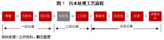 为达到合格的成品水(生活或生产的用水和作为最后处置的废水)的水质要求而对原水加工的过程称为水处理。其中:1)加工原水为生活或工业的用水时,称为给水处理;2)加工废水为再次使用或排放时,称为废水处理,废水处理一般包括生活污水处理和工业污水处理。广义的水处理包括对处理过程中所产生的废水、污泥以及废气的处理及最终处置。从产业链上下游来划分,污水处理行业的参与者主要有产品和设备提供商(包括污水处理药剂、污水处理设备、污水管网、检测仪器等)、工程建设承包商和水务设施运营商。