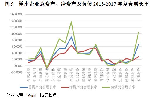 样本企业中资产复合增长率第二至第四名,依次是民营企业博天环境、碧水源和中金环境。