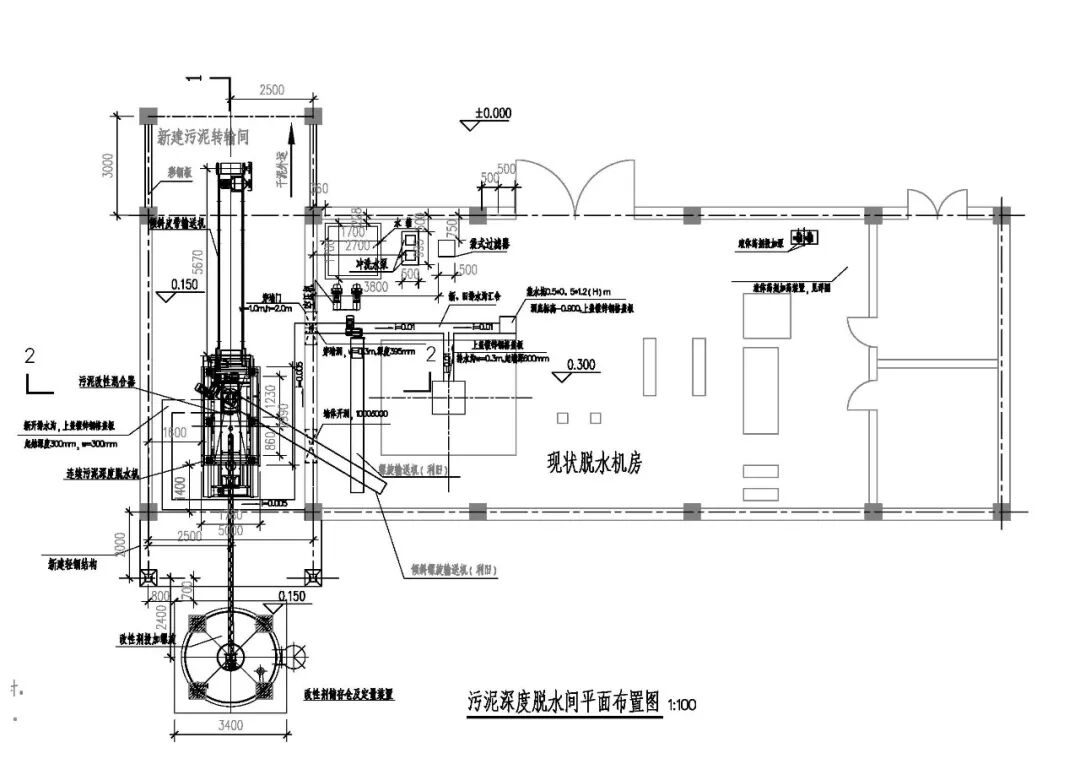 占地面积小,落地安装 一般利用原一级脱水污泥堆场空余场地布置 |