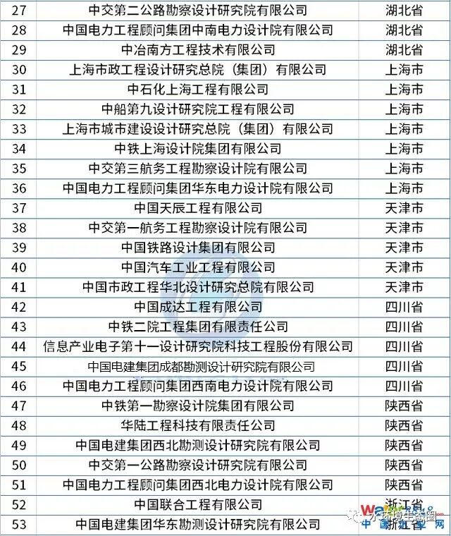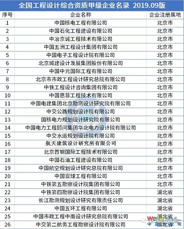 最新整理!全国工程设计综合资质甲级企业名录(78家)