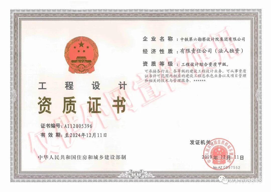 持有国家建设部颁发的建筑、市政、桥梁、公路、岩土、地质、风景园林、环境污染防治、人防、文物保护等多项设计资质及国家计委颁发的工程咨询证书。