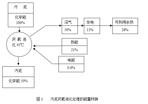 在厌氧消化污泥的过程中,一部分干物质转化成沼气,可用于发电、制备热水或低压蒸气、作为燃料供给发酵系统保温或作为污泥干燥和污泥焚烧时的辅助燃料。