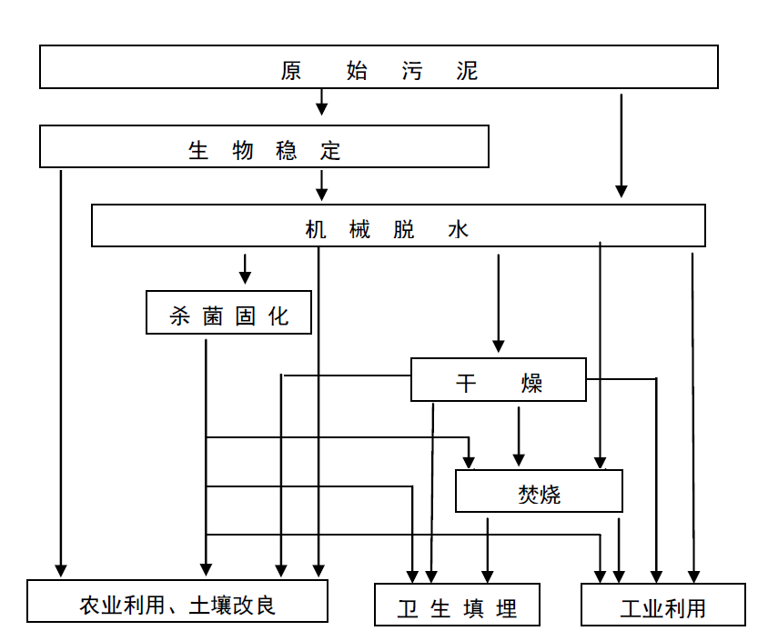 图1简单综合了欧洲较为常用的污泥处理、处置或利用的途径。