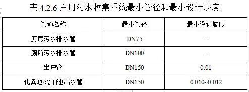 4.2.6 采用重力收集的户用污水收集管道的设计,应符合下列规定: