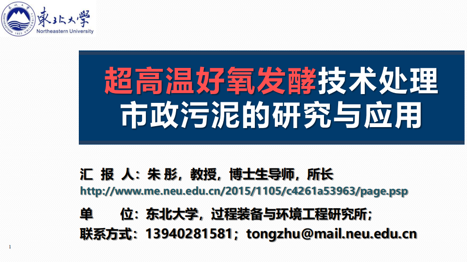 今天直播的题目为:超高温好氧发酵技术处理市政污泥的研究与应用
