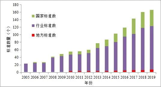 截至2019年底,全国现行有效海水利用相关标准166项,包括国家标准43项,行业标准116项,地方标准7项(图7)。