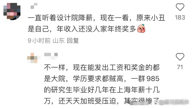 看到这样一份薪资收入,大家为他感到高兴的同时,也纷纷表达了羡慕之情。就像有位网友评论说的:一直听说设计院降薪,现在一看自己的年收入还没有人家年终奖多。