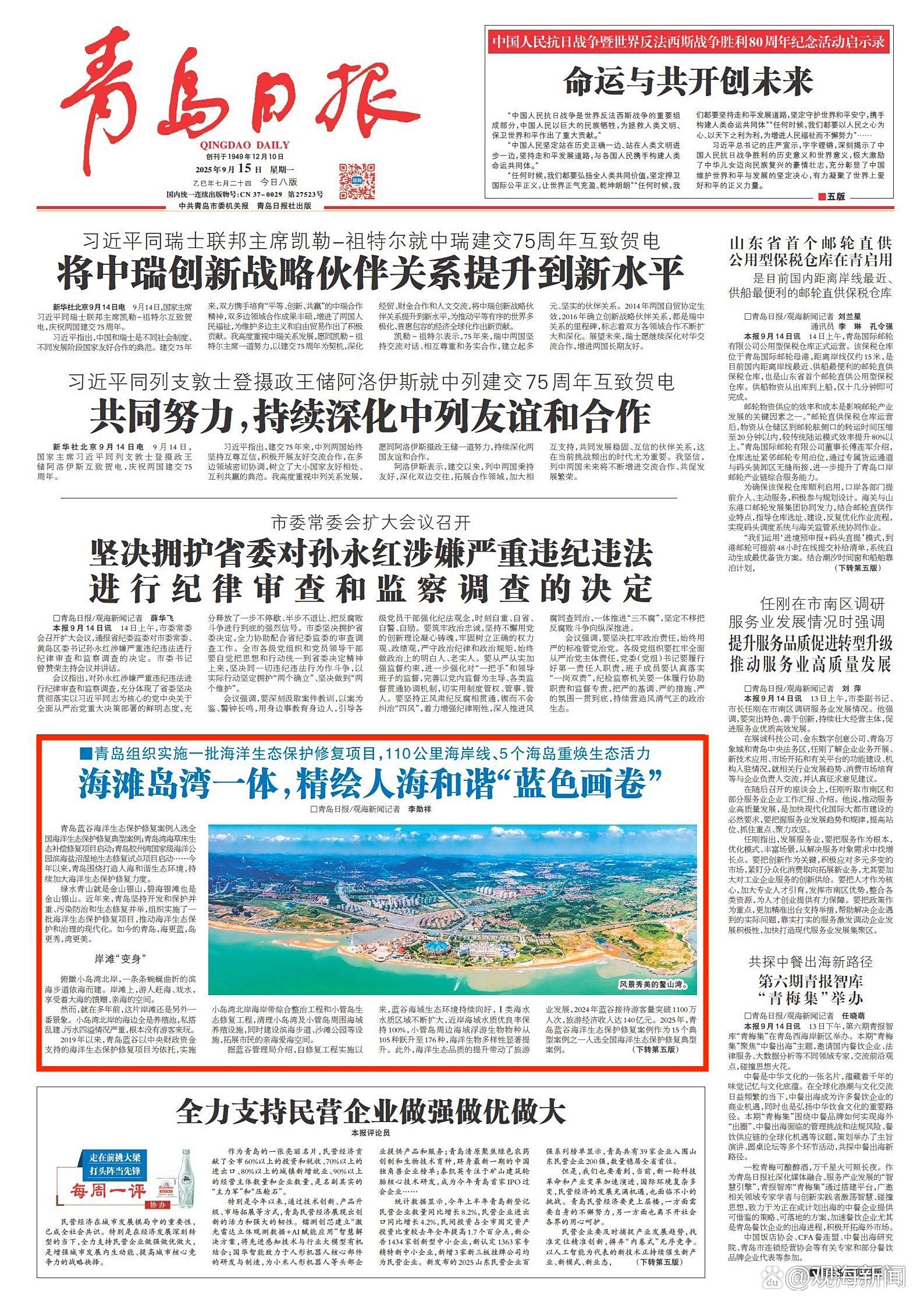 青岛日报2025年9月15日1版