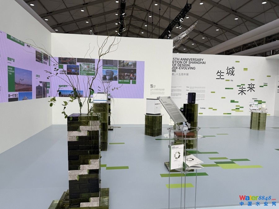在“循环之基”展区,数座由绿色玻璃构筑的雕塑引人注目。这些玻璃的原料并非寻常物料,而是来自城市污泥。上海城投水务(集团)有限公司提供的城市污泥,经由上海设计周可持续实践中心与上海复洁科技股份有限公司联合研发,转化为全球首发的泥晶玻璃材料。这一成果不仅是“设计+科技”融合的创新示范,更标志着城市污水废弃物资源化利用的重要突破。