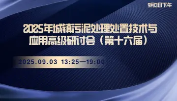 9月3日下午| 2025年城镇污泥处理处置技术与应用高级研讨会(第十六届)