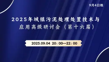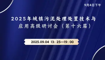 9月4日晚| 2025年城镇污泥处理处置技术与应用高级研讨会(第十六届)