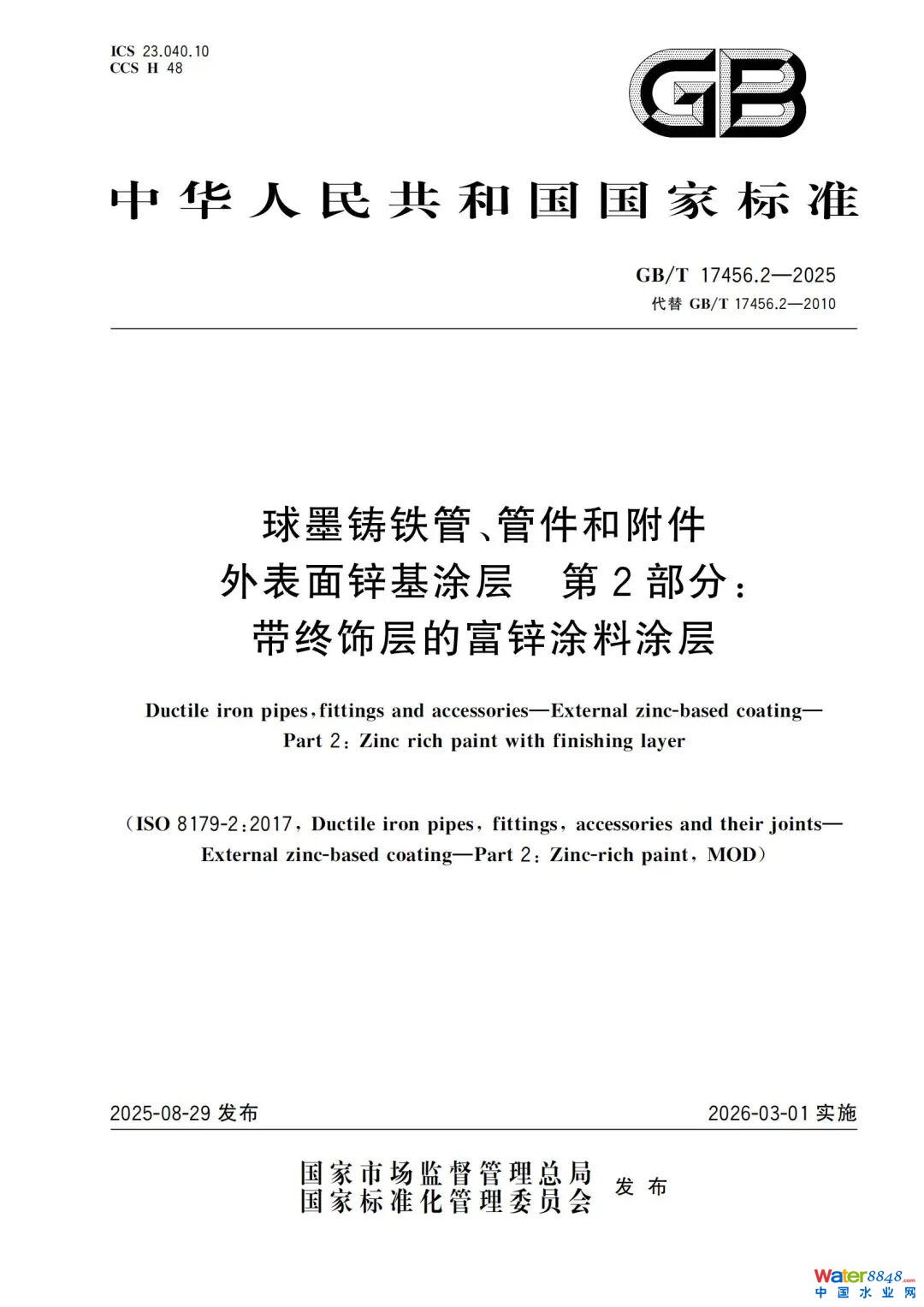 2025年以来,中原环保参与编制的6项国家标准陆续发布,包括《城镇雨水污水分流提升井一体化设备》(GB/T 46265-2025)、《非开挖铺设用球墨铸铁管》(GB/T 46199-2025)、《球墨铸铁管自锚接口系统 自锚长度计算方法》(GB/T 46322-2025)、《球墨铸铁管、管件和附件外表面锌基涂层 第1部分:带终饰层的金属锌及锌合金涂层》(GB/T 17456.1-2025)、《球墨铸铁管、管件和附件外表面锌基涂层 第2部分:带终饰层的富锌涂料涂层》(GB/T 17456.2-2025)。以上标准分别由全国城镇给水排水标准化技术委员会、全国钢标准化技术委员会归口管理,为城镇排水系统的优化升级提供了重要的技术支撑。