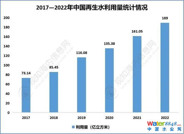 2017—2022年中国再生水利用量统计情况