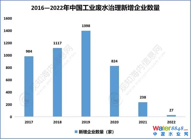 2016-2022年中国工业废水治理新增企业数量