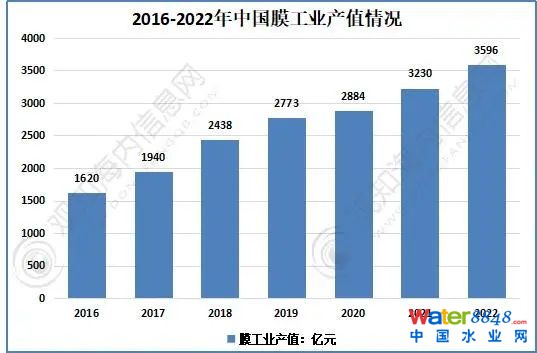 2016-2022年中国膜工业产值情况