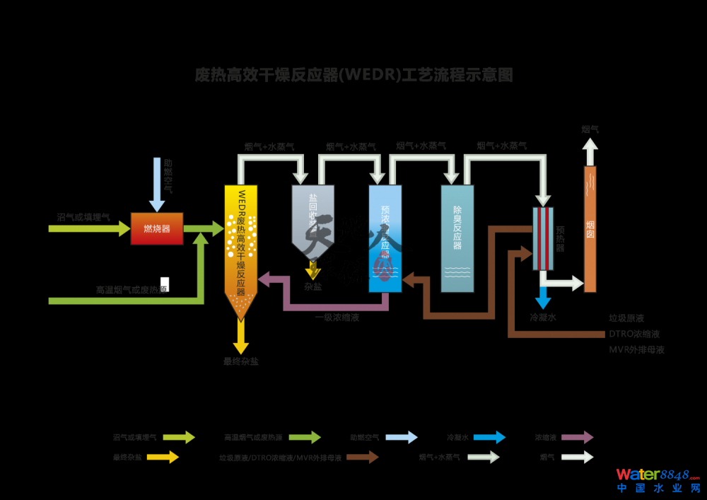 简称WEDR技术,是一种可利用高温烟气、沼气、天然气等清洁能源的干燥技术。具有适用性强、产生残渣少、占地面积省、运行成本低、系统运营稳等特点,可专门用于渗滤液全量化处理、浓缩液全量化处理、MVR母液处理、高盐废水全量化处理。