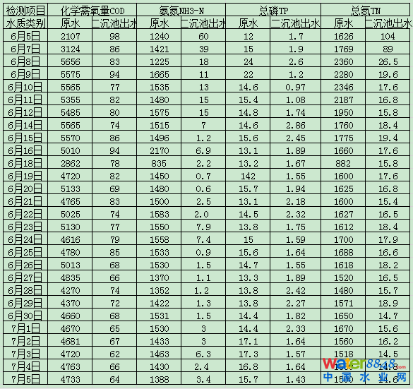 具体出水指标如下:
