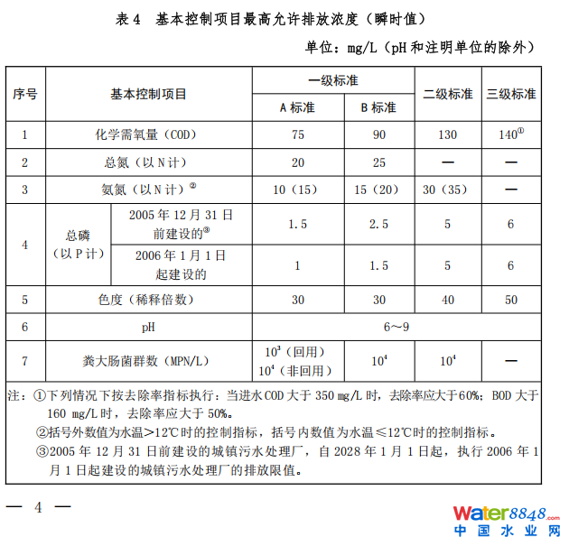 ③2005 年 12 月 31 日前建设的城镇污水处理厂,自 2028 年 1 月 1 日起,执行 2006 年 1